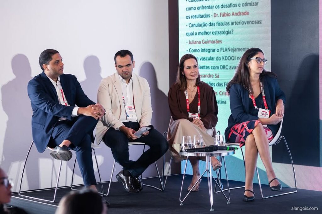 Em seguida, foi a vez do Dr. Alexandre Sá falar sobre o planejamento do acesso vascular conforme as diretrizes do KDOQI (Kidney Disease Outcomes Quality Initiative), uma iniciativa da National Kidney Foundation que visa melhorar os resultados e a qualidade do cuidado para pessoas com doença renal crônica (DRC).
