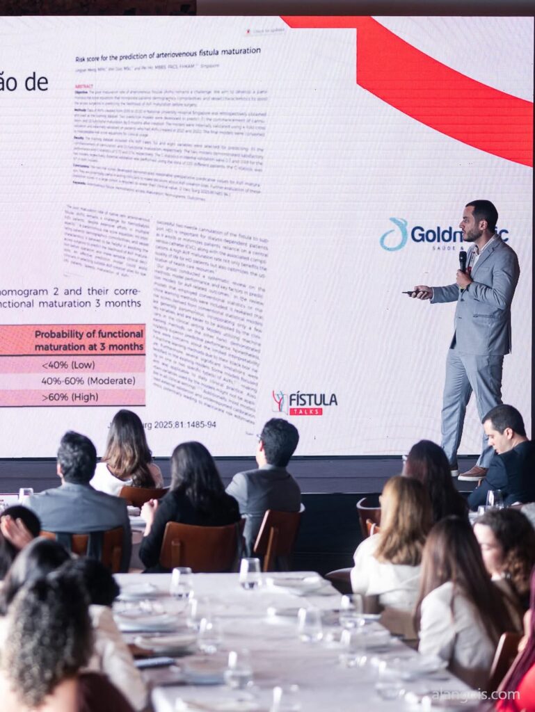 Encerrando a segunda sessão, o Dr. João Pedro Carvalho falou sobre “Score de risco para maturação da fístula arteriovenosa e qual sua importância?”, destacando o uso dessa ferramenta clínica que pode orientar a decisão sobre o tipo de acesso mais indicado para cada perfil de paciente.