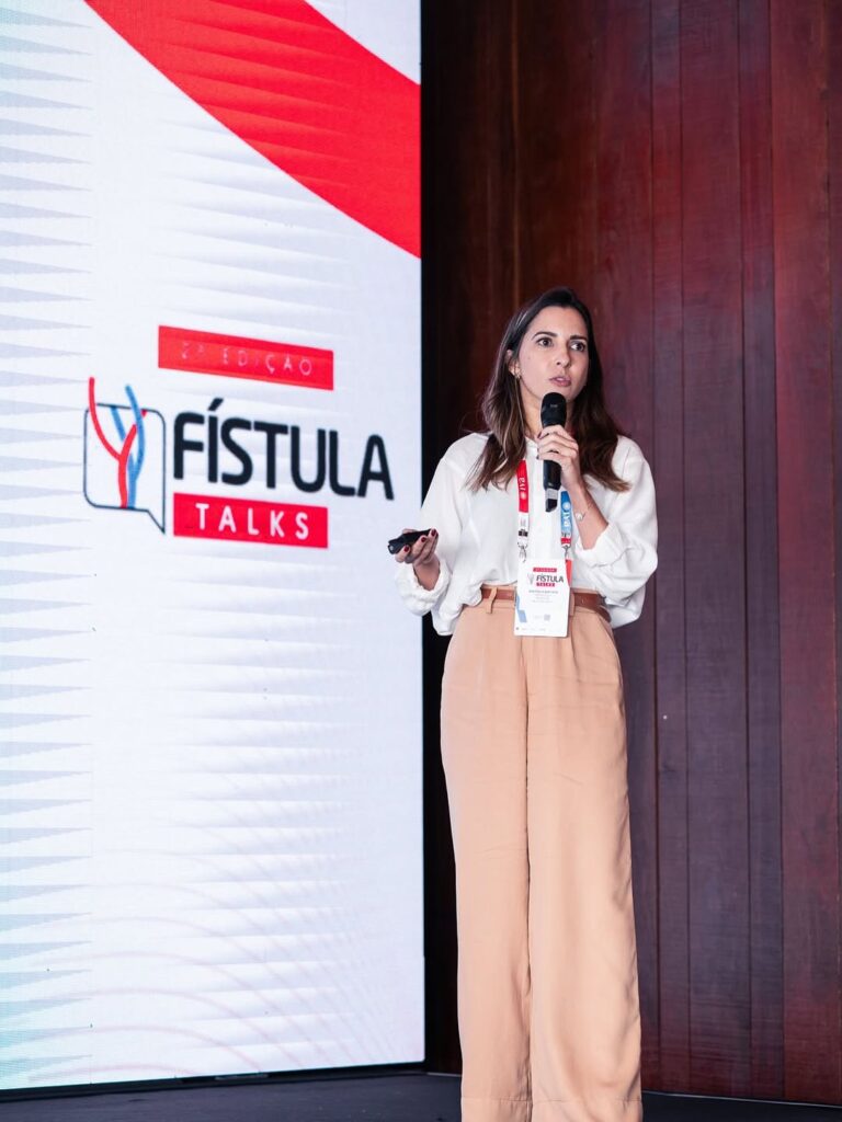 Na sequência, a pergunta “Falência de Acesso Vascular: quando indicar a priorização para o transplante?” foi debatida sob duas perspectivas: a Dra. Ana Paula Baptista trouxe a visão da nefrologia, enquanto o Dr. Rodrigo Mota apresentou o olhar da cirurgia vascular.
